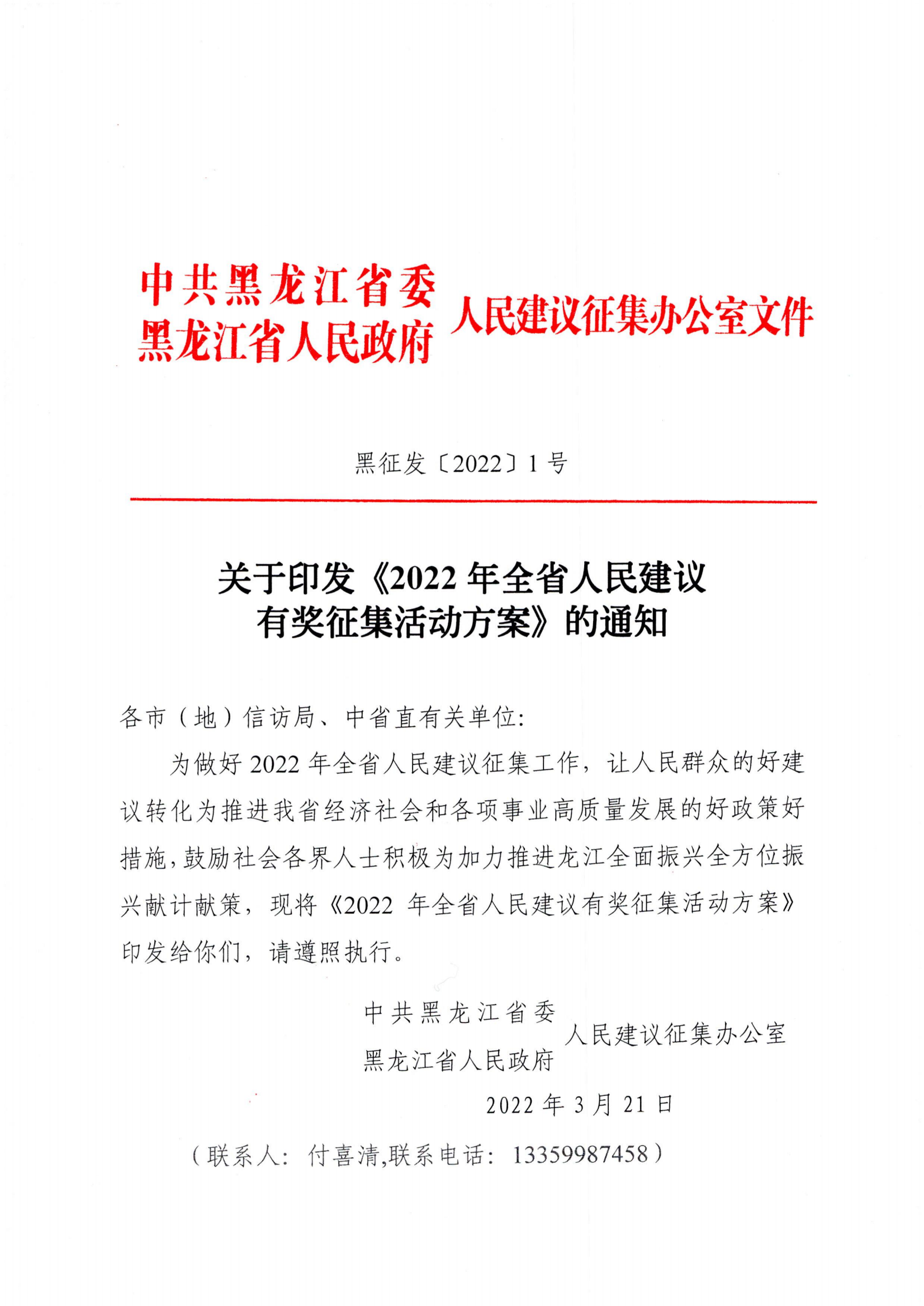 关于印发《2022年全省人民建议有奖征集活动方案》的通知